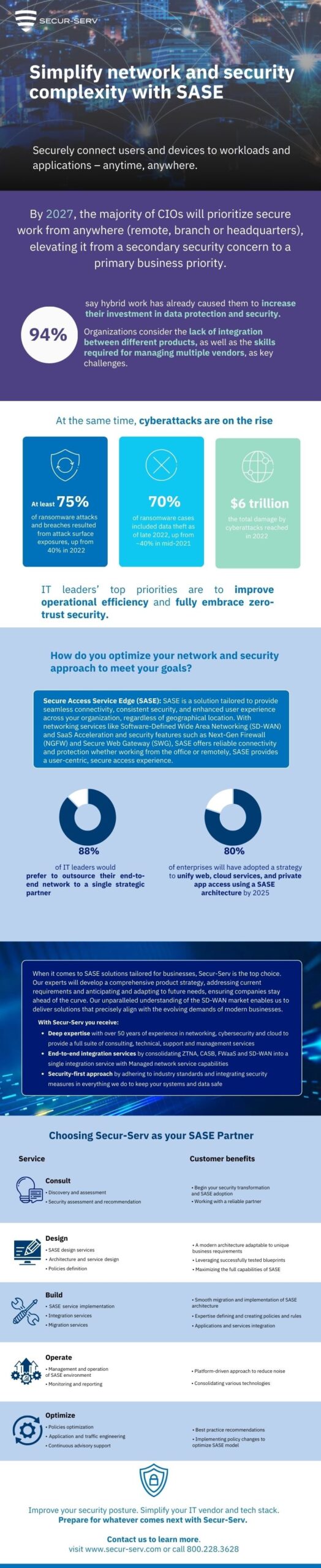 At Secur-Serv, we’re dedicated to helping your business stay ahead of the curve by SASE to streamline processes, modernize systems, and transform operations for maximum efficiency and growth potential. Let us be your partner in transforming your business for the future.