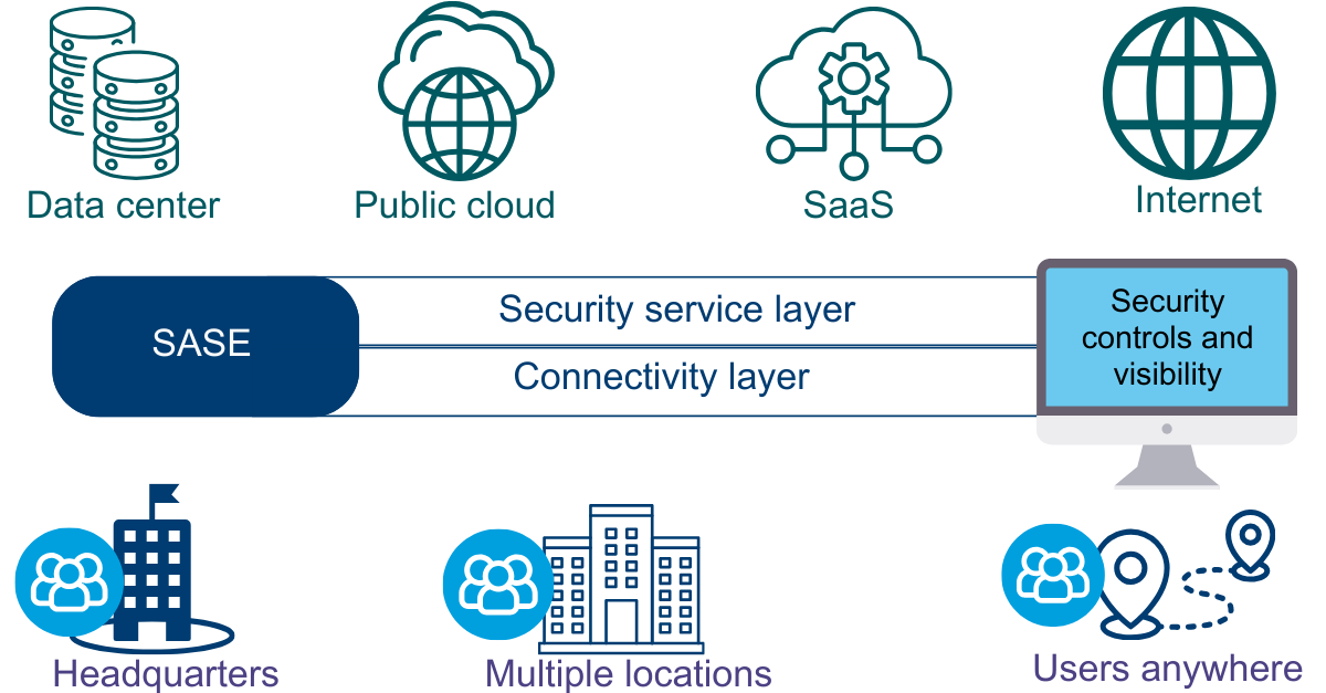 SASE provides multi-layered next generation security, comprehensive network capabilities, on easy to scale cloud technology.